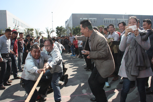 下午,一場別開生面的拔河比賽將活動(dòng)推向小高潮。拔河比賽以促進(jìn)企業(yè)交流為宗旨,豐富職工體育活動(dòng)為目的,為企業(yè)搭建展現(xiàn)集體風(fēng)采的舞臺(tái),從而發(fā)揚(yáng)團(tuán)隊(duì)精神,增強(qiáng)凝聚力。此次比賽園區(qū)企業(yè)積極響應(yīng),共有11個(gè)企業(yè)組隊(duì)參加,特別是有些企業(yè)為了參賽,臨時(shí)停工,比賽結(jié)束后回單位繼續(xù)生產(chǎn),體現(xiàn)了園區(qū)大家庭的凝聚力。每支參賽隊(duì)伍共15人,其中男生10人,女生5人,實(shí)行淘汰制晉級(jí)方式。當(dāng)比賽哨聲響起,各參賽隊(duì)員們口中一起高呼“一二,一二”,雙手緊握長繩,憋足勁拼命往后拉,拉拉隊(duì)在旁助陣加油,恨不得抓起繩子跟隊(duì)員們一起努力,各種加油聲、吶喊聲此起彼伏,回響至整個(gè)園區(qū)。經(jīng)過激烈較量,最終冠捷科技獲得冠軍,瑞達(dá)物業(yè)獲得亞軍。