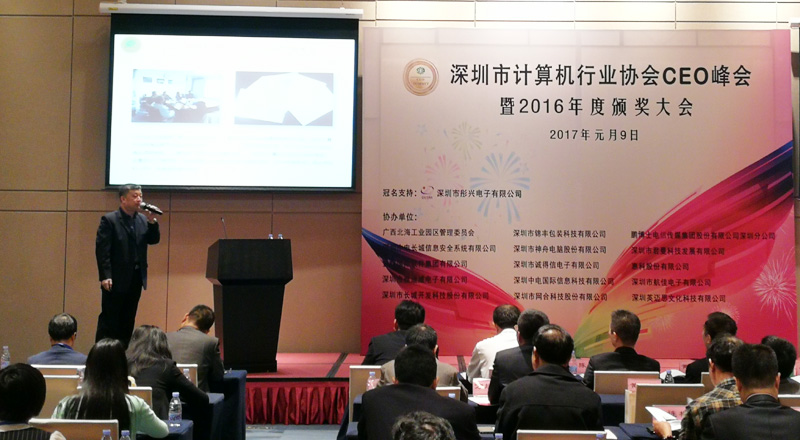 本次大會是協(xié)會的年度“盛宴”,邀請了深圳市及國內知名計算機行業(yè)相關企業(yè)代表出席,會議對協(xié)會2016年度的工作做了全面總結,表彰了行業(yè)優(yōu)秀企業(yè)和個人,并邀請優(yōu)秀會員神舟電腦、長城電腦、天鷹兄弟、彤興集團、國通世紀等分享了創(chuàng)業(yè)歷程及前沿技術。會議期間,廣西北海工業(yè)園區(qū)管委會、中國電子北海產業(yè)園公司通過與企業(yè)一對一溝通洽談方式,為中國電子北部灣信息港儲備優(yōu)秀項目。