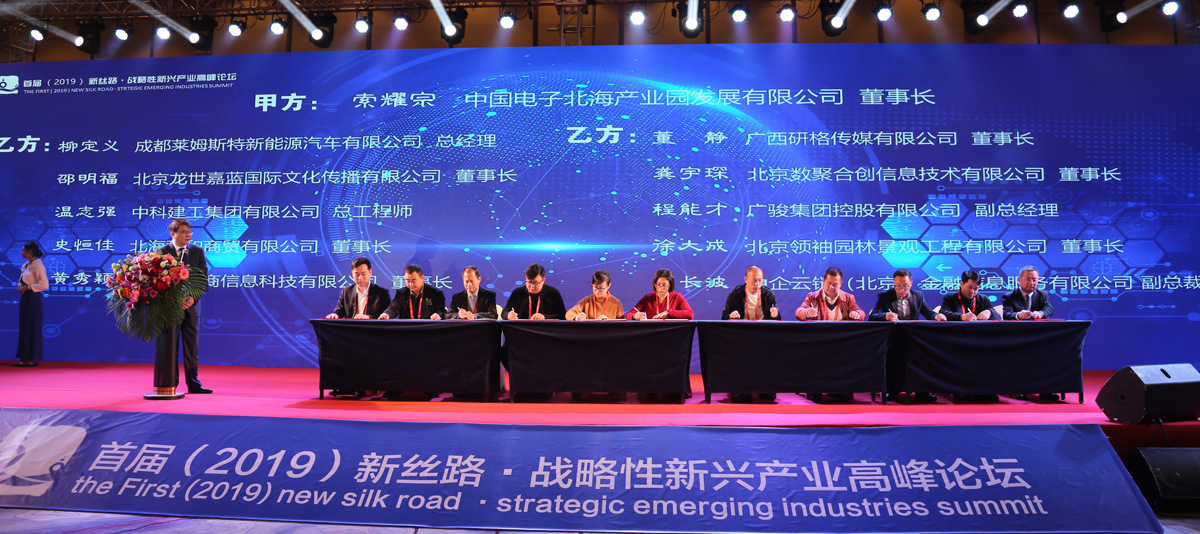 2019年1月10日,以“創(chuàng)新引領(lǐng)戰(zhàn)略性新興產(chǎn)業(yè)”為主題的首屆(2019)新絲路·戰(zhàn)略性新興產(chǎn)業(yè)高峰論壇在北海舉行。外貿(mào)部原副部長周可仁、市長蔡錦軍、中電北海產(chǎn)業(yè)園公司董事長索耀宗出席論壇并致辭。有關(guān)國家部委領(lǐng)導(dǎo)、院士專家、行業(yè)組織的代表,新一代信息技術(shù)、智能制造、大健康、影視文化等國內(nèi)外企業(yè)家以及金融投資機(jī)構(gòu)負(fù)責(zé)人、媒體機(jī)構(gòu)代表、科研院所代表500多人參加了此次盛會。