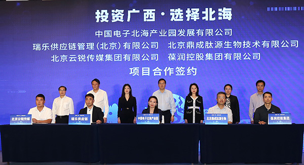 2023年4月14日下午,“投資廣西 選擇北?!睘橹黝}的北海市招商引資座談會(huì)暨2023年中國(guó)電子北部灣信息港產(chǎn)業(yè)招商簽約儀式成功舉辦。在北海市委書記蔡錦軍,市委常委、常務(wù)副市長(zhǎng)譚秀洪,市委常委、秘書長(zhǎng)鄭定雄,經(jīng)開區(qū)管委會(huì)主任劉忠廣,中國(guó)電子北海產(chǎn)業(yè)園公司執(zhí)行董事徐俊男,長(zhǎng)江商學(xué)院老師徐汀、長(zhǎng)江商學(xué)院老師許耀公的見證下,完成了8個(gè)項(xiàng)目簽約,涉及高端信息服務(wù)、生物醫(yī)療、供應(yīng)鏈、投融資等領(lǐng)域建立戰(zhàn)略合作關(guān)系,共助北海產(chǎn)業(yè)高質(zhì)量發(fā)展。